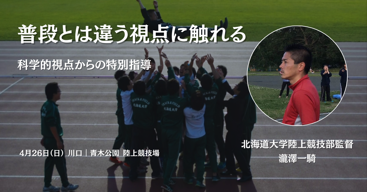 4月26日(日)の青木公園 陸上競技場での練習は、 特別講師による指導で実施いたします。 当日は、北海道大学陸…